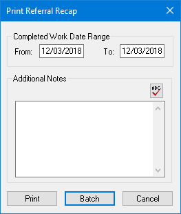 4. Under Additional Notes, type a note that you want to print on the Referral Recap report.