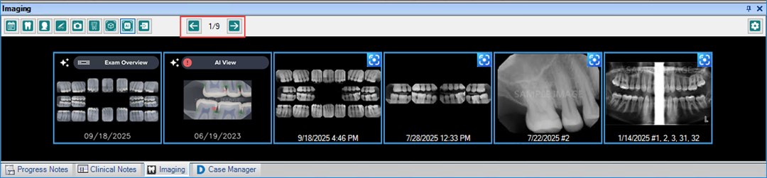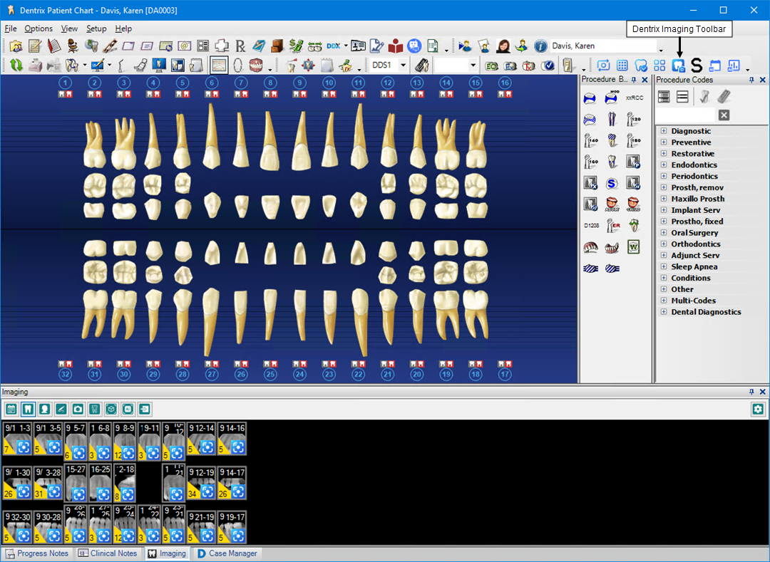 The Patient Chart includes the Imaging toolbar and the Imaging tab. The Imaging panel consists of a toolbar and a thumbnail bar.