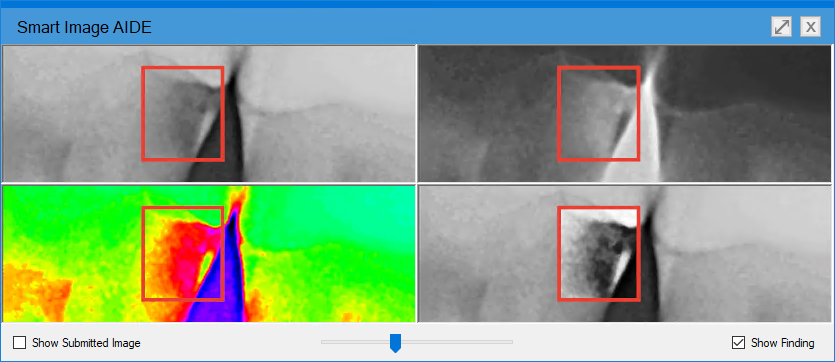 Note: The AIDE view consists of four different versions of the image in a quadrant. In the upper-left, the image is sharpened; in the upper-right, the image is inverted; in the lower-right, the contrast is increased; and in the lower-left, color enhances the image.