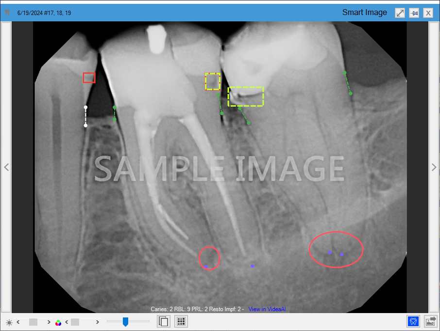 Figure 2. Diagnostic Viewer with Dentrix Detect AI indications.