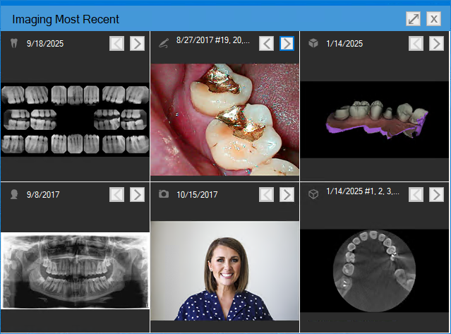 You can quickly view the most recent images you acquired. To view an image in the Patient Chart, click it. To view an image in its respective imaging software application, double-click it.