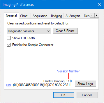 You can view the Imaging Unique Device Identifier (UDI) and version number in the Imaging Preferences dialog box.
