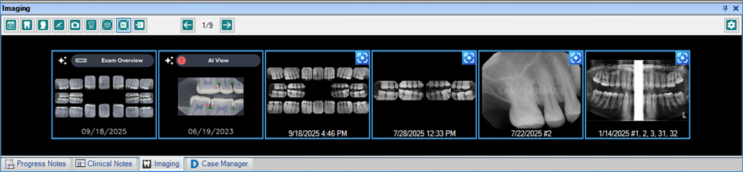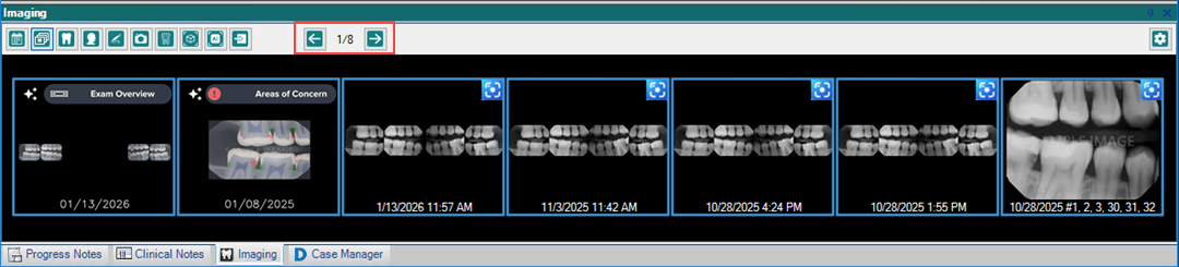 1. In the Dentrix Imaging toolbar, click the Show Thumbnails of All Images button.