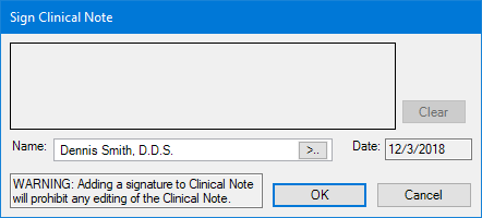 6. Using a mouse, light pen, or other pointing device, sign the note, and then click OK.