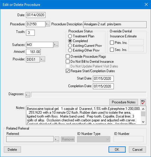 Procedure notes are attached directly to a procedure for documentation and reference purposes. You can add notes manually during posting. However, to make creating procedure notes faster and more accurate, you can create a default note for each procedure code. When you post a procedure code in the Patient Chart or the Ledger that has a default note attached, the note is inserted automatically. Once the note is added, review it and make any changes unique to the patient's treatment.