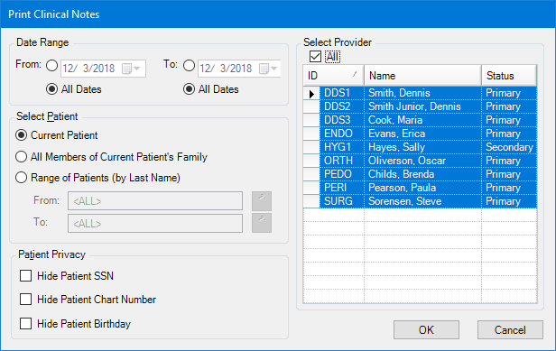 To print the clinical notes for a single provider, select the same provider for the From and To fields.