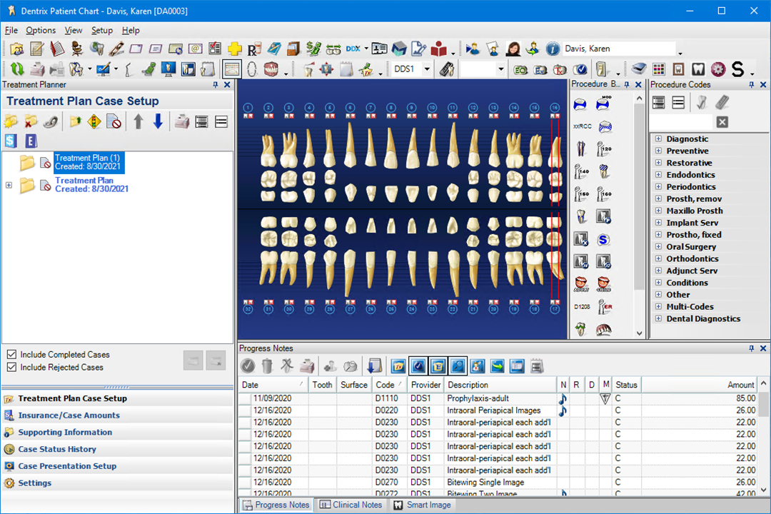 Changing the layout of the Patient Chart to the Treatment Planner displays the Navigation panel of the Treatment Planner. In this layout, you can manage treatment plan cases while the Patient Chart is still open and functioning.