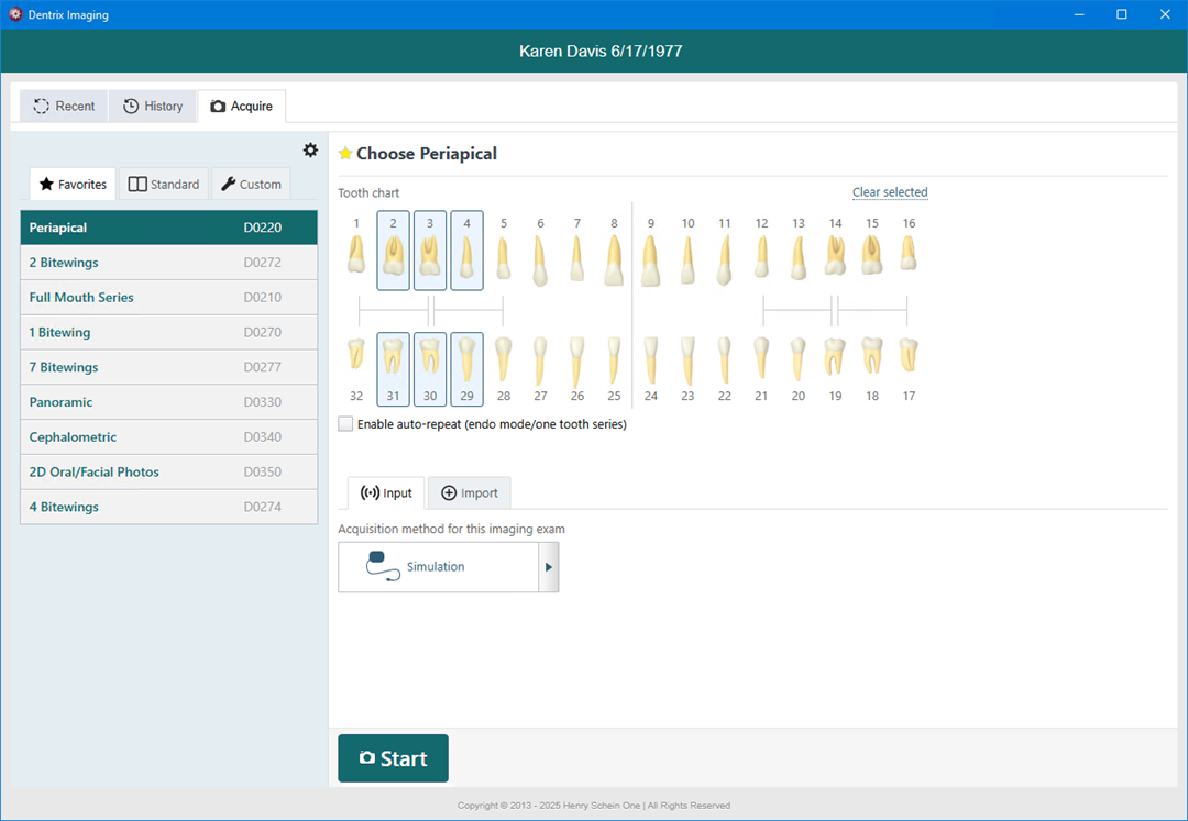 4. Click Periapical, and then click the desired teeth from the Tooth chart.