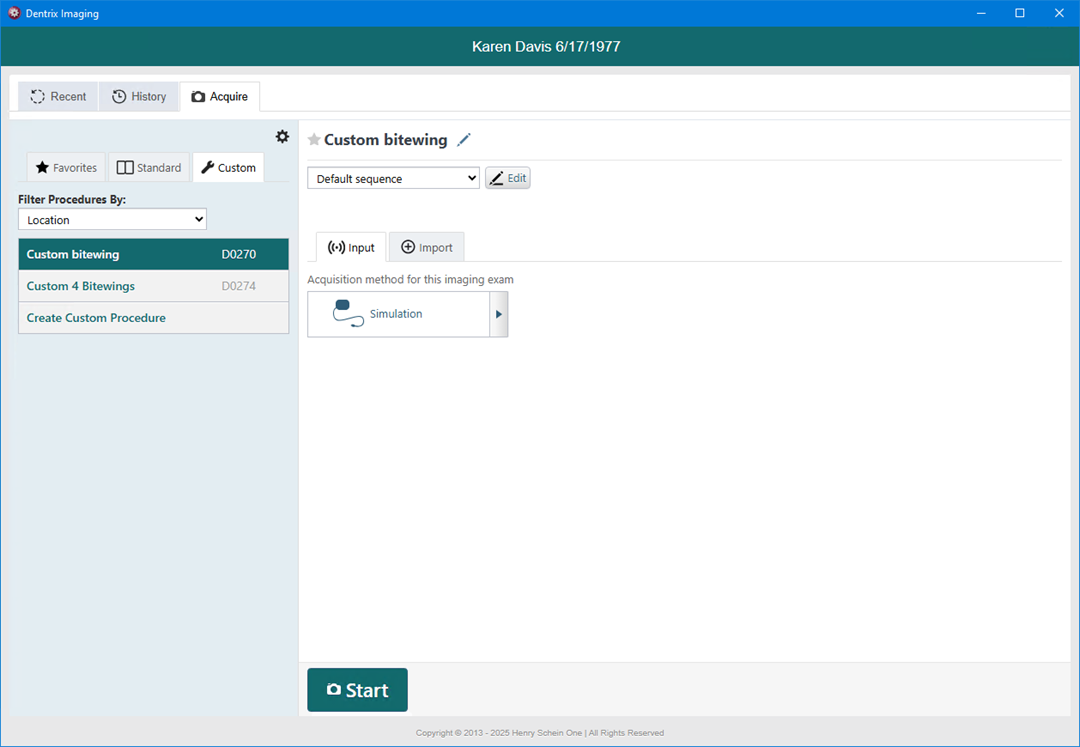Note: Custom imaging procedures are location, organization, or user specific.