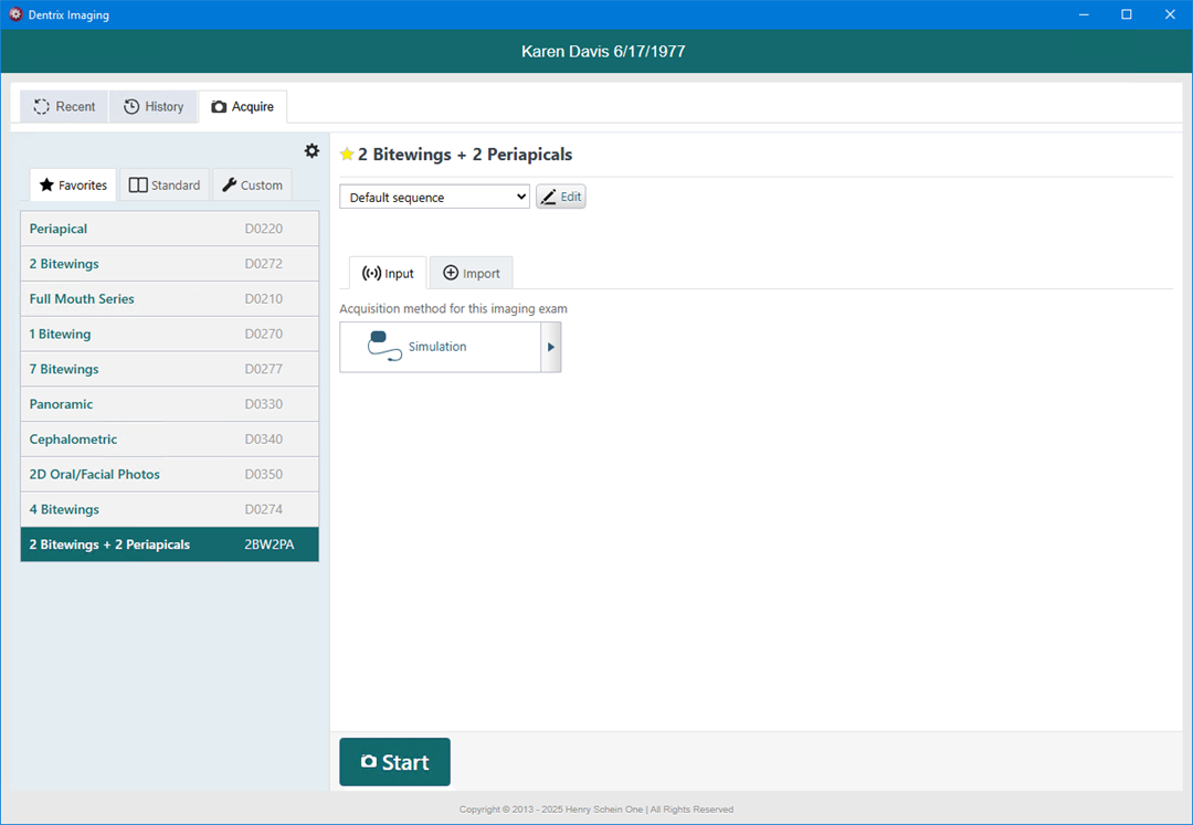 You can have an imaging procedure appear as a favorite in Dentrix Imaging when you are acquiring images so that you have quick and easy access to that procedure. If you no longer want an imaging procedure to be a favorite, you can make it a non-favorite.
