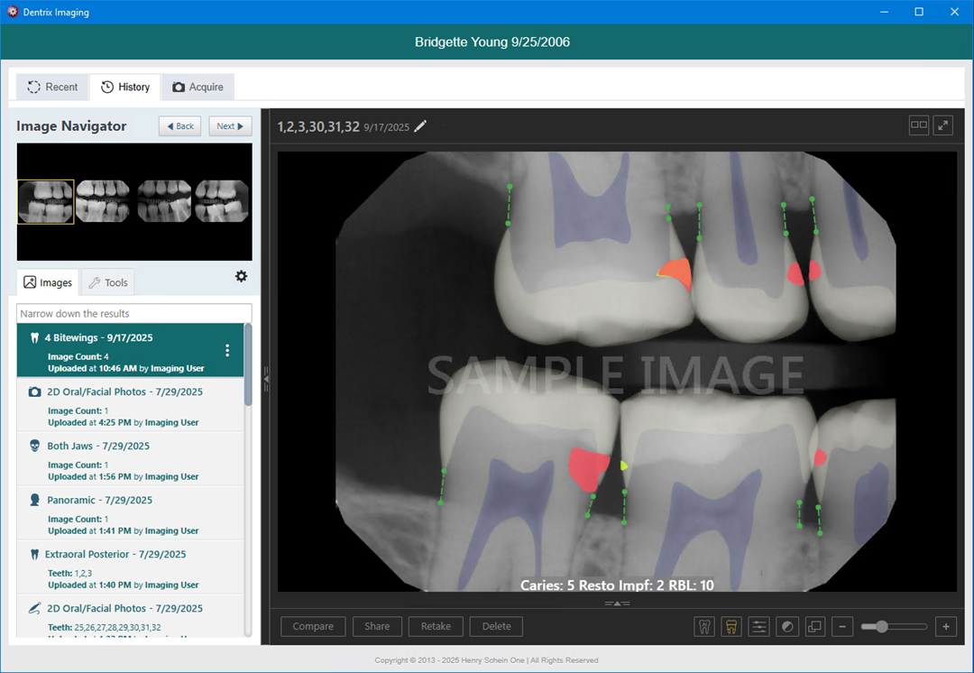 5. To restore an image or multiple images within a series, select the desired series, such as a full mouth series or bitewings, and then complete the following: