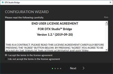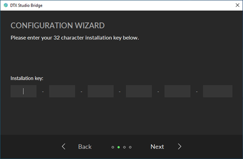 The DTX Studio Bridge Configuration Wizard screen appears.