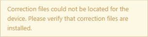 An error message appears, indicating that the correction files could not be found. This occurs because it takes a few seconds for the files to be installed from the sensor.