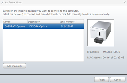 The following steps describe setting up the DIGORA Optime device. If these steps do not apply to your device, contact your device's manufacturer for instructions on how to add your device to the DTX Studio driver dashboard.