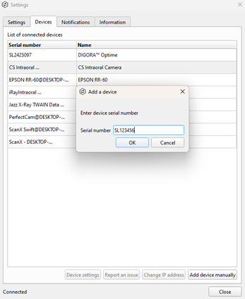 3. If your device is not listed, click Add device manually.