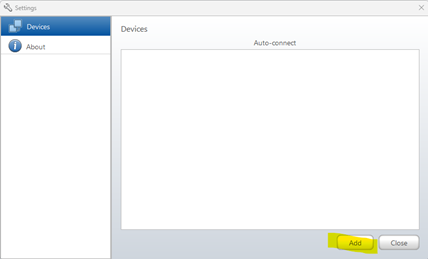 7. In the Settings dialog box, click Add, and then select the device that you want to add.