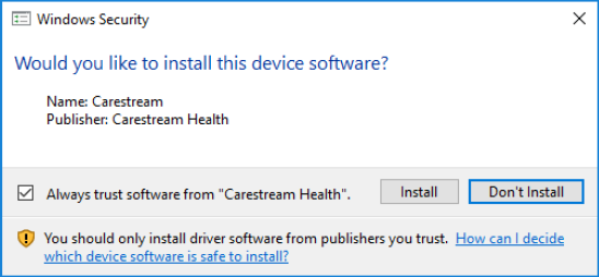 Dentrix Imaging supports acquiring intraoral images from any Kodak/Carestream intraoral digital X-ray sensor through the Carestream RVG TWAIN driver. The Kodak/Carestream TWAIN driver supports most Kodak/Carestream RVG intraoral digital X-ray sensors, which includes the RVG5000, 5100, 5200, 6000, 6100, 6200, and so on. You must install Kodak/Carestream RVG driver on each computer that you use to acquire images from an RVG sensor.