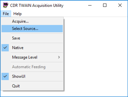 The CDR TWAIN Acquisition Utility dialog box appears.