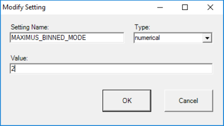 Under Setting Name, type MAXIMUS_BINNED_MODE.