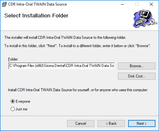 4. Specify the installation folder, select who can use the TWAIN Data Source, and then click Next.