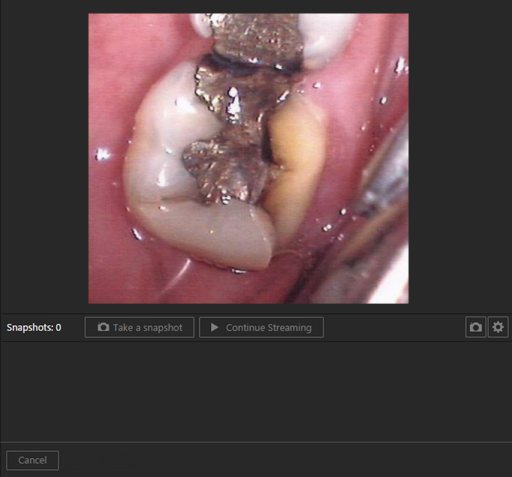 Dentrix Imaging supports acquiring intraoral images from many generic intraoral cameras on computers running the Windows operating system.