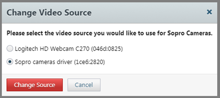 b. Select the option that corresponds to the correct camera, and then click Change Source.