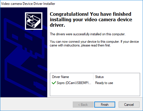 Note: You can obtain the SOPRO camera drivers from the SOPRO technical support website (https://www.soprotechnicalsupport.com/drivers/) or the disc that came with the SOPRO camera.