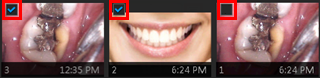 To save one or more snapshots as extraoral images, select the snapshots that are extraoral images (deselect snapshots that are not extraoral images), and then drag them to the Extraoral Photos box.