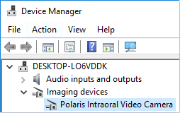 4. Expand the Imaging Devices category, and make sure that the camera is listed ("Polaris Intraoral Video Camera").