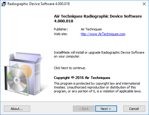 The Air Techniques Radiographic Device Software screen appears.