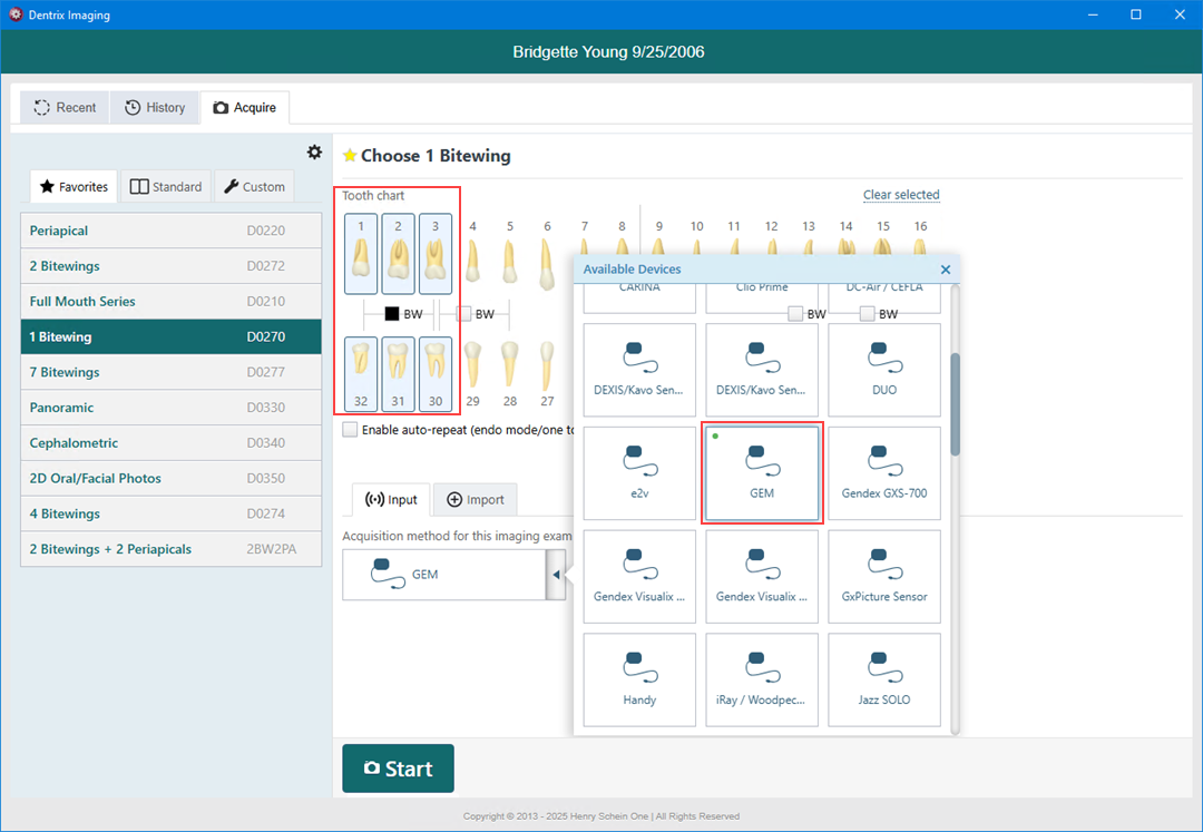 Dentrix Imaging supports acquiring intraoral images from the Brasseler GEM intraoral X-ray sensors on computers running the Windows operating system. Drivers for the Brasseler GEM sensor must be installed on each computer that the GEM sensor will be connected to.