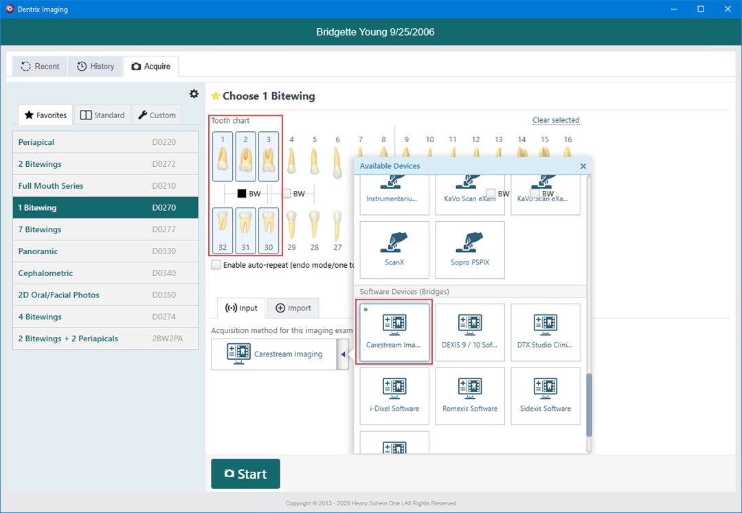 Dentrix Imaging supports acquiring intraoral, extraoral, and CBCT images from the Carestream software on computers running the Windows operating system. You must install the Carestream software on each computer that uses the software bridge.