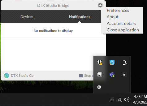 2. In the system tray, click the DTX Studio Bridge icon.