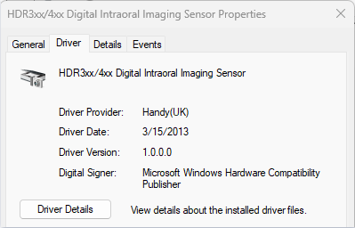4. Right-click HDR3xx/4xx Digital Intraoral Imaging Sensor, and then click Properties.