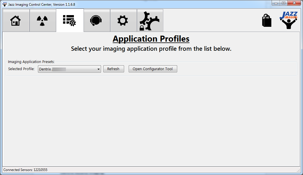 1. Open the Jazz Control Center and confirm that the sensor is connected to the computer.