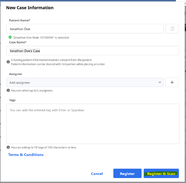 6. Click Register & Scan.