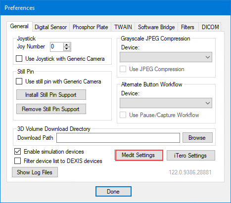 5. To close the Medit Settings dialog box, click Done.