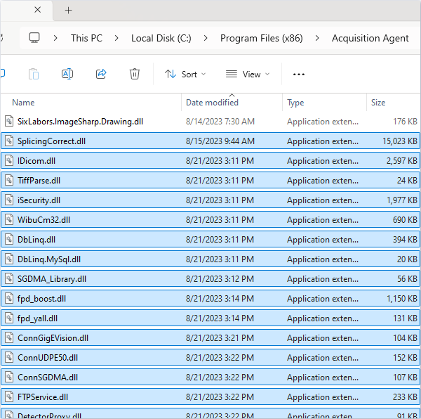 5. In File Explorer, browse to the folder where the acquisition agent program files are installed. (By default, C:\Program Files (x86)\Acquisition Agent.)