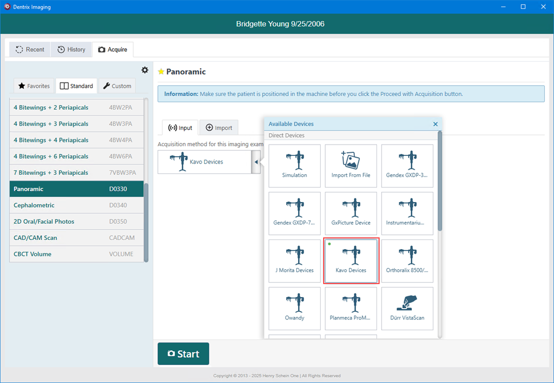 Once the KaVo devices integration is functional, you can test it by acquiring a test image using Dentrix Imaging.
