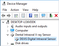 To ensure that the DEXIS Platinum sensor is detected by your computer, open Device Manager, and then verify that the device appears.