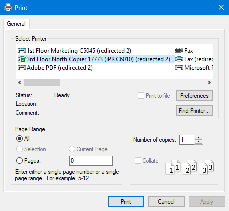 3.   Select a printer from the list provided.