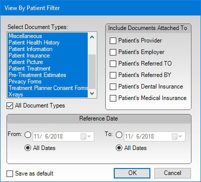 3. Under Include Documents Attached To, select the options to include the documents attached to the patient's provider, employer, insurance, and/or referral sources in the Document Tree.