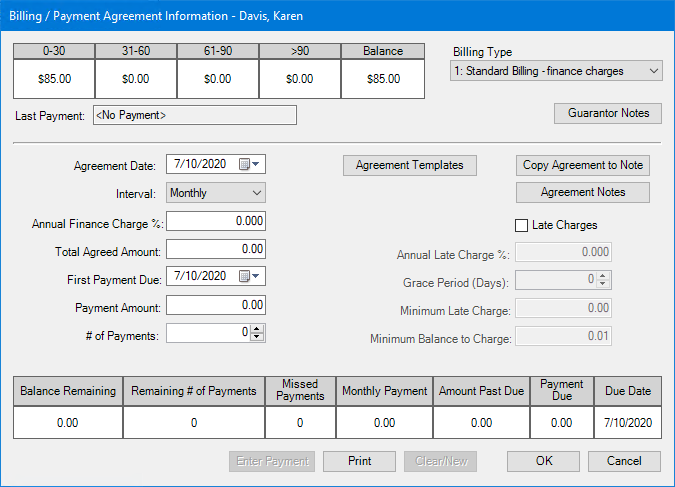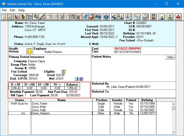 In Dentrix, each family account is assigned a billing type. By using billing types, you can target specific groups when applying finance charges, processing bills, and printing reports. Dentrix comes with the following default billing types: