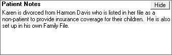 When Dentrix is first started, the default for the notes field is hidden. Thereafter, whenever a patient is displayed in the Family File, the notes display depending on the state of the previous patient's notes.