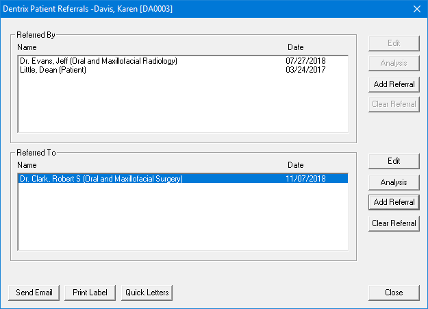1. With a patient selected in the Family File window, double-click the Referred To block.