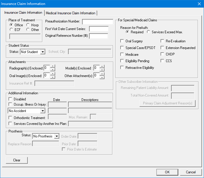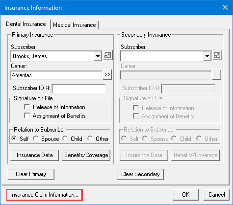 The Insurance Claim Information dialog box appears.