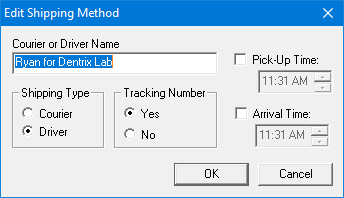 Pick-Up Time - Select and then type the approximate time the courier or driver picks up cases.
