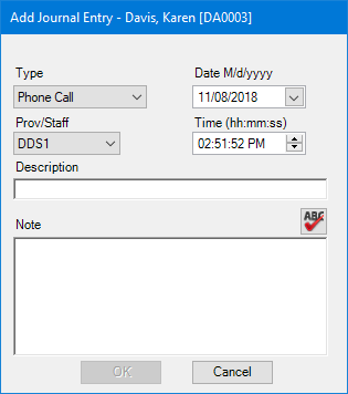 7. To perform a spell check of the note text, click the spell check button, and then click OK.