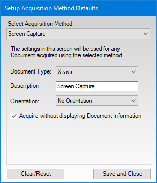 Select Acquisition Method - Select a method, such as Screen Capture, from the list.