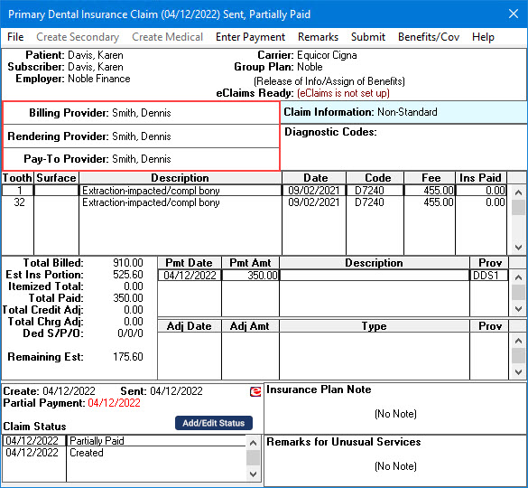 Claims are assigned to providers according to the practice defaults set in the Office Manager.